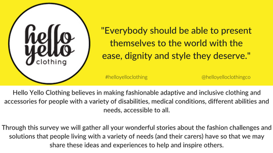Below is a link to a short survey designed to gather stories about the fashion and clothing challenges and solutions that people (and their carers) living with these illnesses or different abilities and needs have experienced.